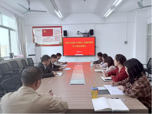3月12日,研究生院召开树立和践行正确政绩观学习教育动员部署会,会议由研究生院党委书记姚洪略主持,研究生院党委全体党员参会。